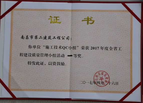 技術質檢部貫徹公司質量標準化管理精神,以切實提高工程質量為目標,積極開展全面質量管理技術攻關活動,所撰寫的《提高GC泡沫水泥保溫板外墻外保溫施工質量 》QC課題成果,榮獲“2017年度全省工程建設優(yōu)秀質量管理小組活動一等獎”。